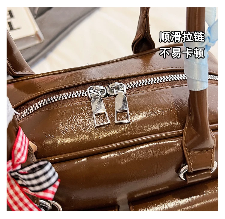 2025 Retro Leather Boston Bag – Women’s Shoulder Tote with Front Pockets